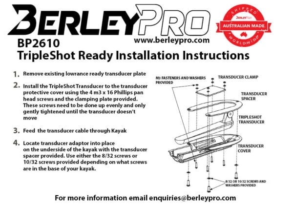The TripleShot ready transducer mount is designed to fit in the existing Lowrance Ready location on the base of Hobie® kayaks. These mount and cover the TripleShot transducer which comes with the Lowrance Hook2 range providing protection and also maintaining a crisp image with the structure scan. Side imaging requires the transducer to sit lower than the sides of the hull to not interfere with the image so this extends below the hull on other Hobie models.