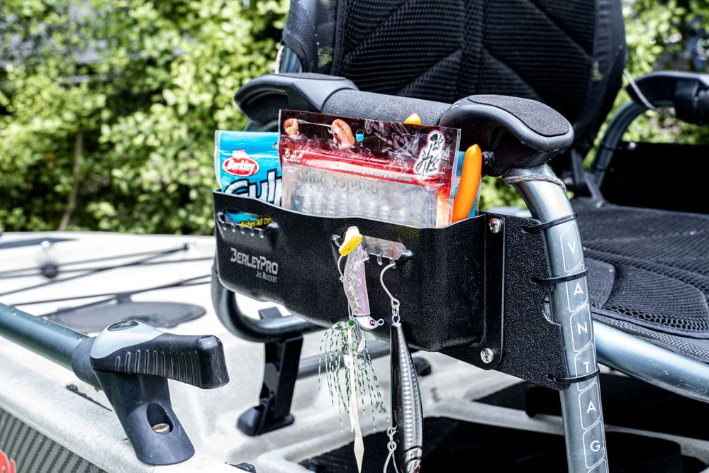 The BerleyPro Van Bro is the ultimate upgrade to the Hobie Pro Angler Vantage seat for those that like to have their gear close at hand and well-organised. This system provides dedicated storage pockets on each side of the seat that are purposely designed to hold and organise all your gear. This kit is perfect for holding leader, jig heads, scissors, pliers, fish grips, Plano and other tackle boxes, hanging jigs, scent packs and much more!
