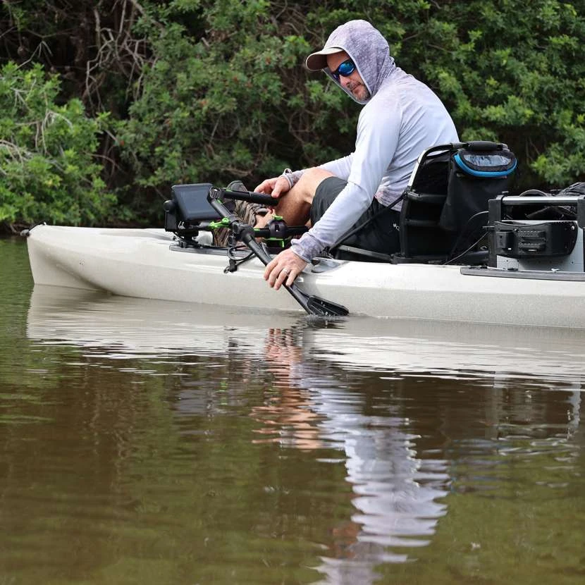 The HEXX Pole transducer mount is compatible with all fishfinder transducers but is best matched with live sonar imaging systems like Garmin Live Scope, Lowrance Active Target, and Humminbird Mega Live. The Pole boasts a lightweight design that doesn’t compromise on robustness and seamlessly integrates with your fishing kayak’s deck or can be mounted to any track or rail including the Hobie H-Rail. The system uses a swing arm mechanism to stow the transducer arm horizontally when not in use. Railblaza quick connect mounting means the HEXX Live Pole 30 can be mounted and dismounted in seconds for transport.
