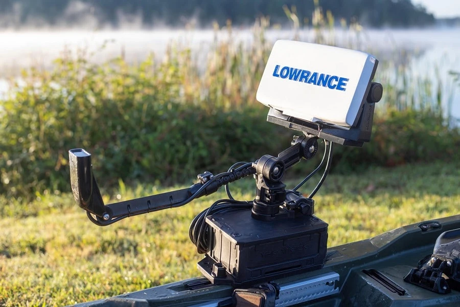 - Track Mounted: Easily attach or remove your fish finder by loosening the two track mount knobs. Requires a minimum of 27 cm of track for attachment.