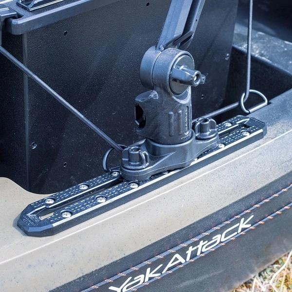 akAttack’s LockNLoad™ mounting system is exactly what you would expect from the leader in track mounting technology. Now, enjoy the versatility and ingenuity of the LockNLoad System in heavy duty applications such as trolling for big game. Due to the two MightyBolt attachment points, the HD Track Mount gives you more gear security than ever before! No track? No problem! You can easily remove the two MightyBolts and use hardware to quickly deck mount your YakAttack rod holder or fish finder, as well as using holes from old-school deck mounts to mount the HD Track Mount crossways. Compatible with YakAttack MightyMount’s, GearTrac, and most other kayak track systems from Scotty Fishing Products, RAM Mounts, and YakGear. For FeelFree Kayaks, 3 Water Kayaks, and Jonny Boats you will need an adapter to be compatible. We offer the needed adapter in a single pack (AAP-1012) and a six pack (AAP-1012-6).
