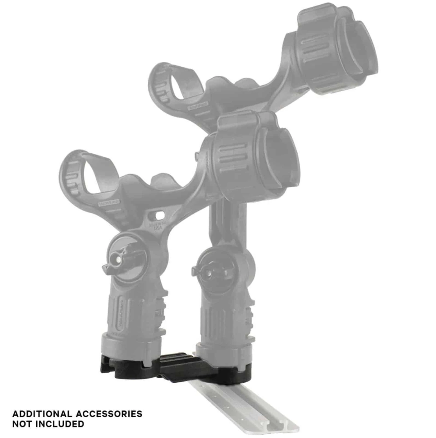 The YakAttack SideArm Track Mount was born out of using existing products to solve a rigging problem. Instead of using a standard 4” Extension Arm with a longer MightyBolt to offset a RotoGrip Paddle Holder, we created an off-the-shelf solution that accomplishes the task and then some. Any YakAttack track-mounted product that uses a single MightyBolt is compatible with the MightyMount at the end of the SideArm. You can also replace the knob of the SideArm with a LockNLoad accessory like a YakAttack Omega Rod Holder or PanFish Portrait Camera Mount. This feature provides the opportunity to mount two accessories from a single point. The RotoGrip Paddle Holder and ParkNPole RotoGrip are two commonly used accessories with the SideArm Track Mount.